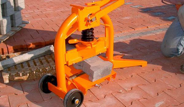 A guilhotina para cortar bloquetes, pavers ou blocos de cimento é uma ferramenta ergonomicamente projetada, com uma alavanca de fácil manuseio, que permite aplicar a pressão necessária para cortar os blocos sem grande esforço físico.