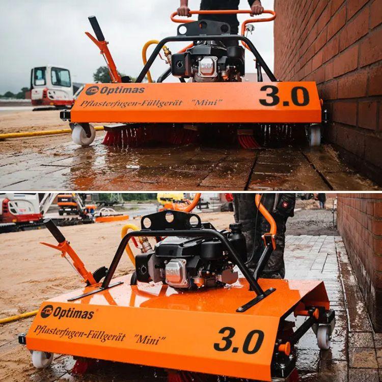 A Rejuntadora Automática de Piso Intertravado, Paver e Bloquete da Optimas foi projetada para trabalho em lugares menores e para preencher as juntas de uma só vez. Somente uma junta completamente preenchida é capaz de transmitir forças de uma pedra de calçada para outra e impedir que as pedras de pavimentação sejam deslocadas, mantendo assim a superfície de pavimentação elástica. Pode ser dobrada para o transporte.